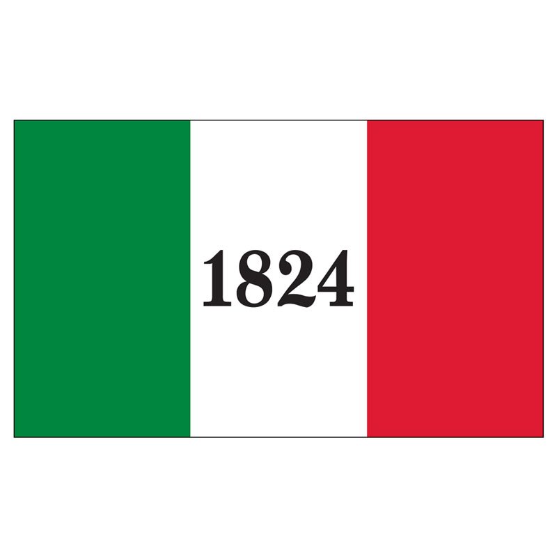 Historical flag of the Alamo made of 200 denier nylon. Flag is complete with canvass header and brass grommets.