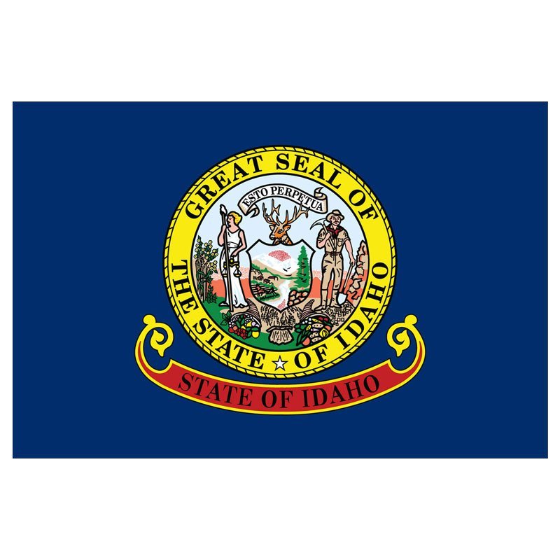 The official state flag of Idaho has a blue background with the state seal located in the center. Under the seal is a red ribbon with the name of the state. Our Idaho flag is made of high-quality nylon with a canvas header and heavy-duty brass grommets.