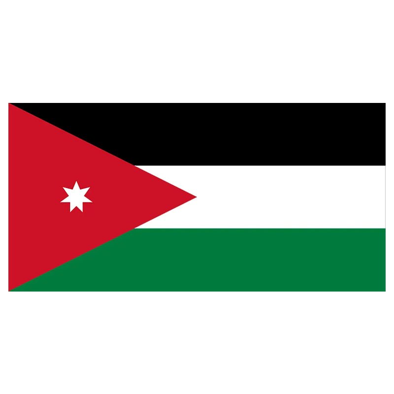 The flag of Jordan includes black, white, and green horizontal bands connected by a red chevron. Our Jordanian flag is constructed with high-quality nylon with a canvas header and heavy-duty brass grommets.