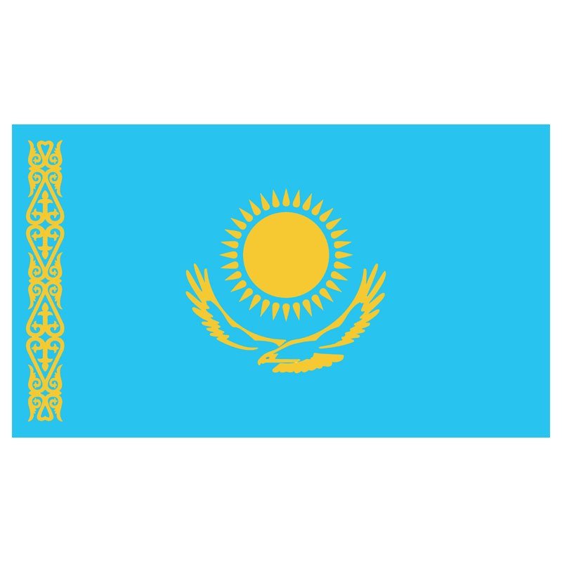 The flag of Kazakhstan has a turquoise background with a gold sun with 32 rays above a soaring golden steppe eagle located in the center. Our Kazakhstan flag is crafted with high-quality nylon with a canvas header and heavy-duty brass grommets.