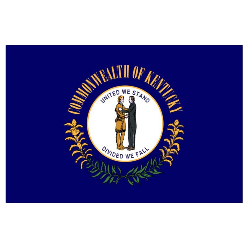 The Kentucky state flag has a navy-blue background with the seal of the Commonwealth in the center that is surrounded by sprigs of goldenrod, the state flower. Our Kentucky flag is made of high-quality nylon with a canvas header and heavy-duty brass grommets.