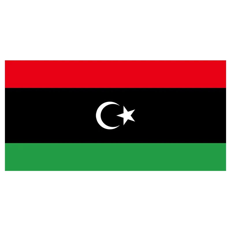 The national flag of Libya has three unequal horizontal stripes of red, black, and green. A white crescent and star is in the center of the flag. Our Libya flag is made of high-quality nylon with a canvas header and heavy-duty brass grommets.