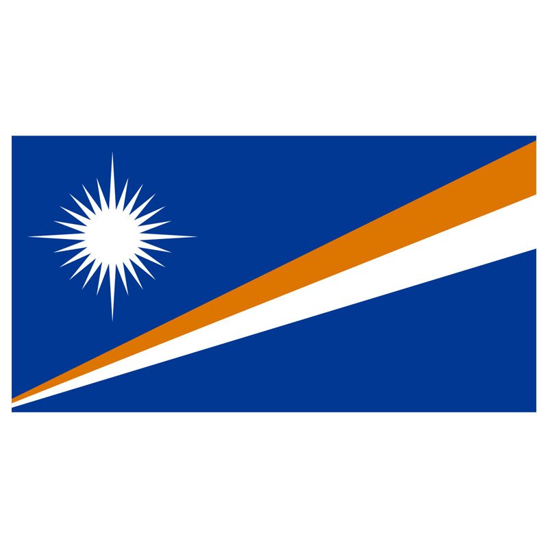The national flag of Marshall Island consists of a dark blue background and two orange and white diagonal stripes of orange radiating from the lower-hoist corner of the flag. In the canton area of the flag of the Marshall Islands, there is a white star with large and small rays. Our Marshall islands flag is crafted with high-quality nylon with a canvas header and heavy-duty brass grommets.