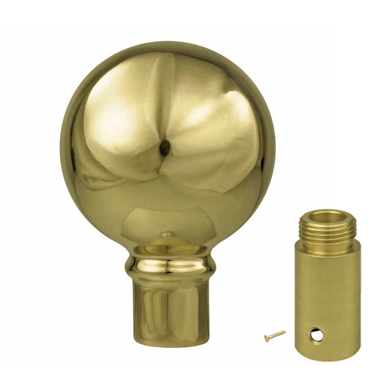 Metal Parade Ball Flagpole Ornament. Use the “No Spindle or Ferrule” option for our deluxe and budget aluminum poles. Use the “With Ferrule” option for our Oak Poles. Use the “Spindle” option for converting ornament for use on an outdoor flagpole truck with 1/2″ threading.