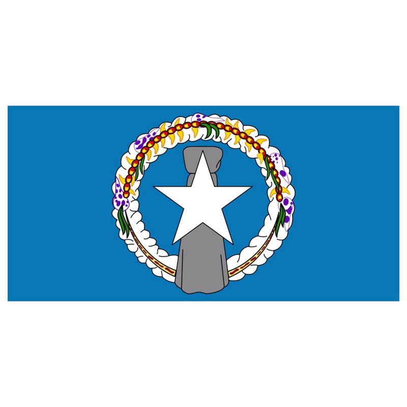 Consisting of 14 islands in the Northern Pacific Ocean, Northern Marianas is a US Terrirory just outside of Guam. The flag is blue with a white star in the center, surrounded by a lei. Our Northern Marianas flag is finished with canvass header and brass grommets.