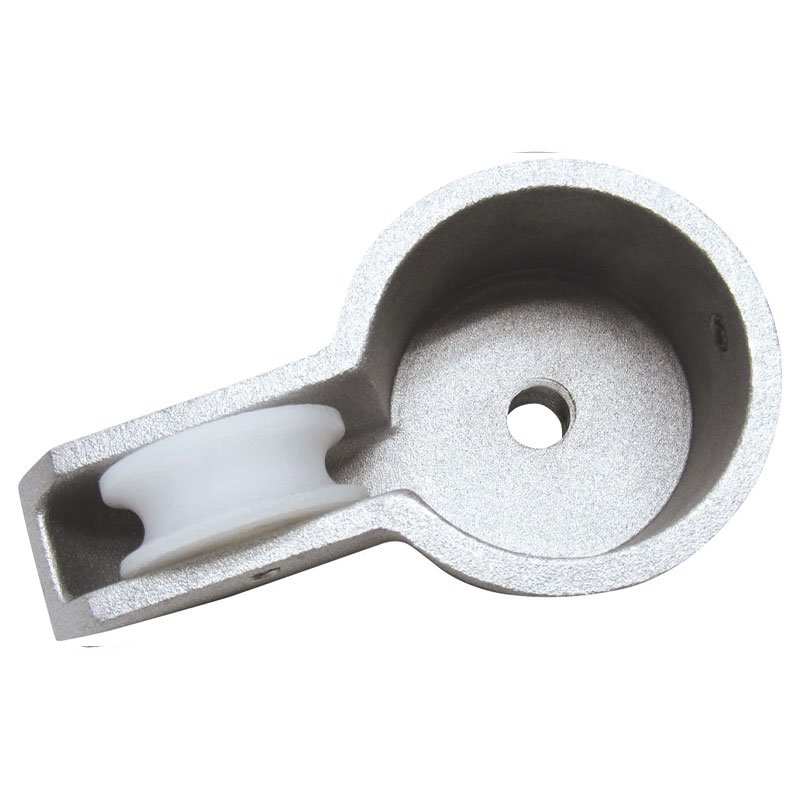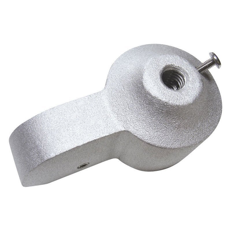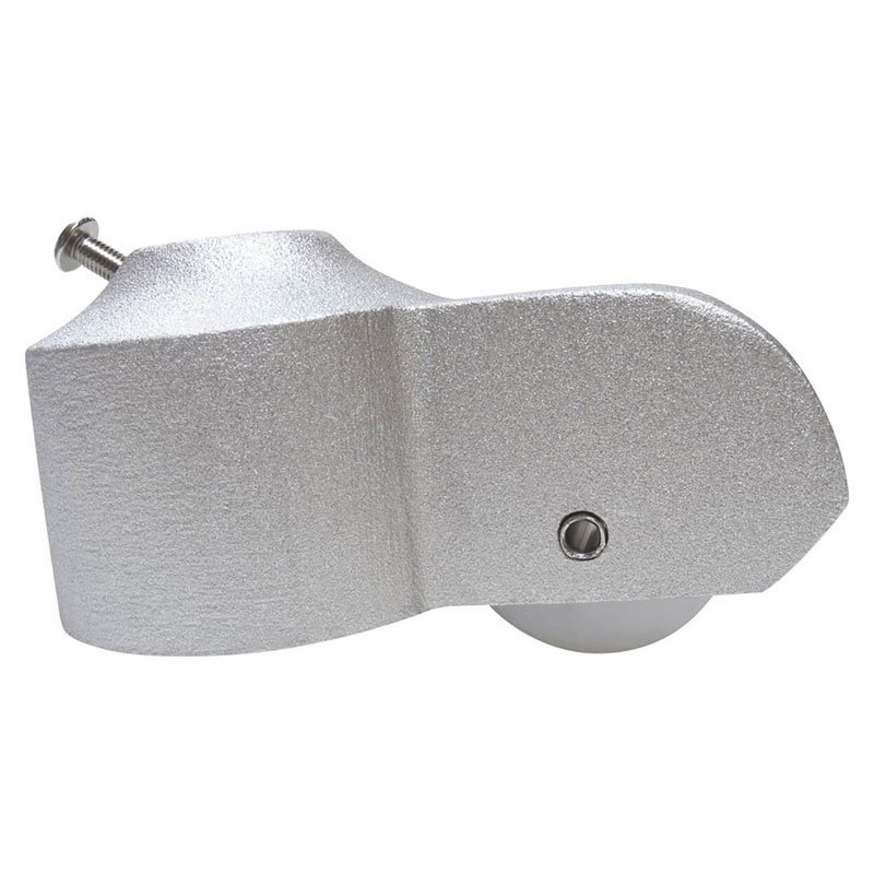 Cast aluminum stationary truck to fit over outside top of flagpole. Secured with stainless steel set screws. Top is threaded for 1/2″ spindle threading for ornaments. Maximum halyard diameter is 5/16″.