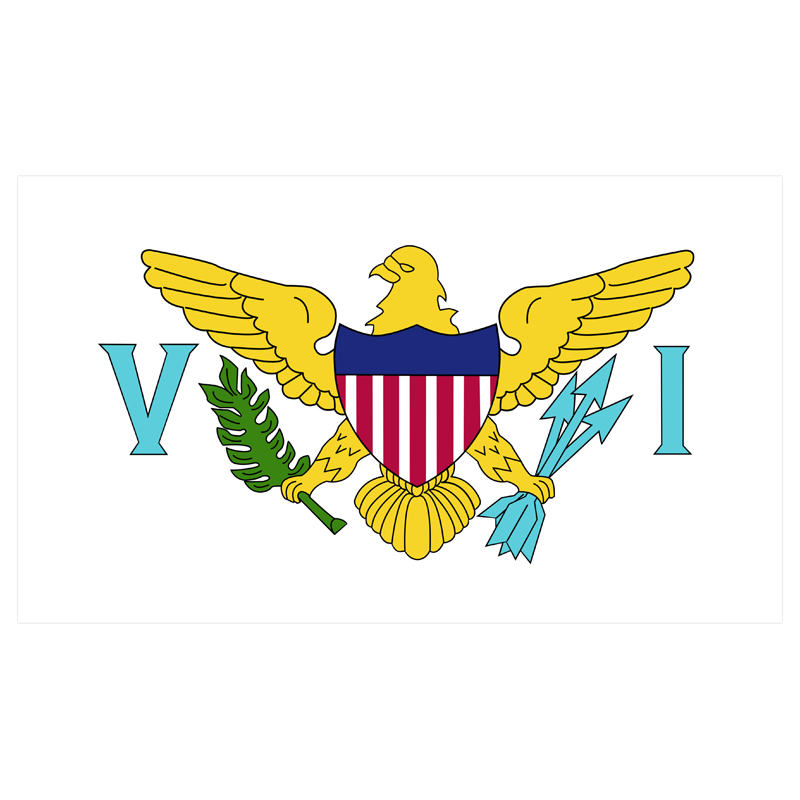 The flag of the US Virgin Islands features a white background with a gold eagle placed between the letters “V” and “I.” Our US Virgin Islands flag is made of high-quality nylon with a canvas header and heavy-duty brass grommets.